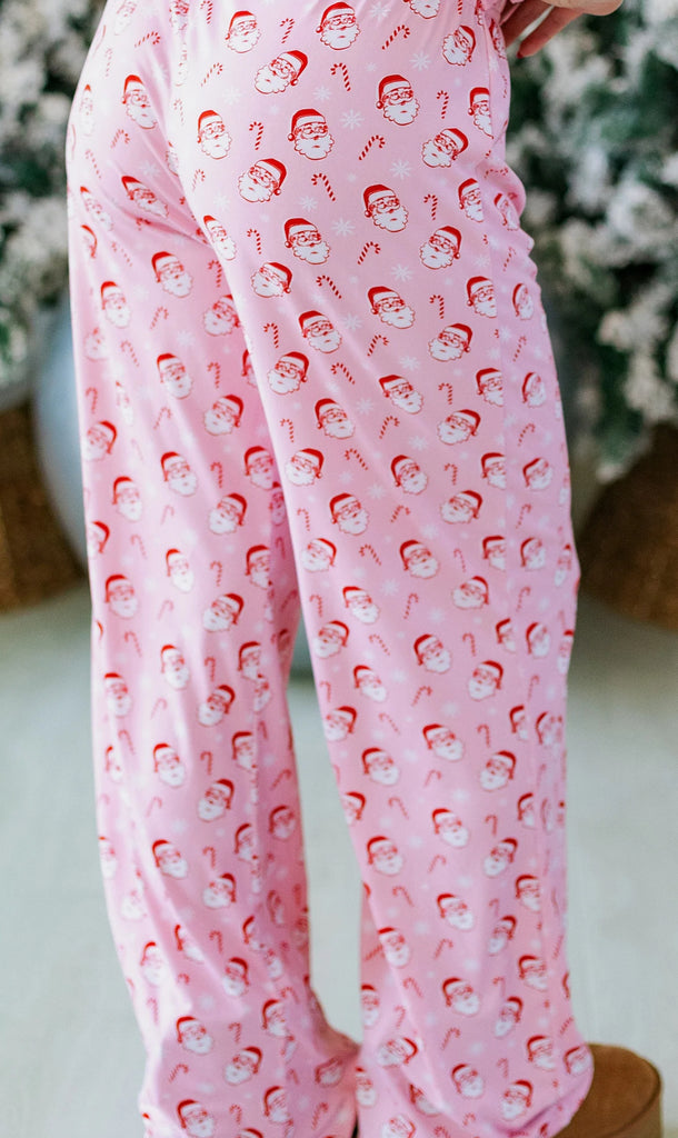 The softest pajama pants you ever did feel. These will help keep you in the festive spirit all holiday season. Baby Pink tie at waist. Check out our matching custom designed tshirt to match as well.