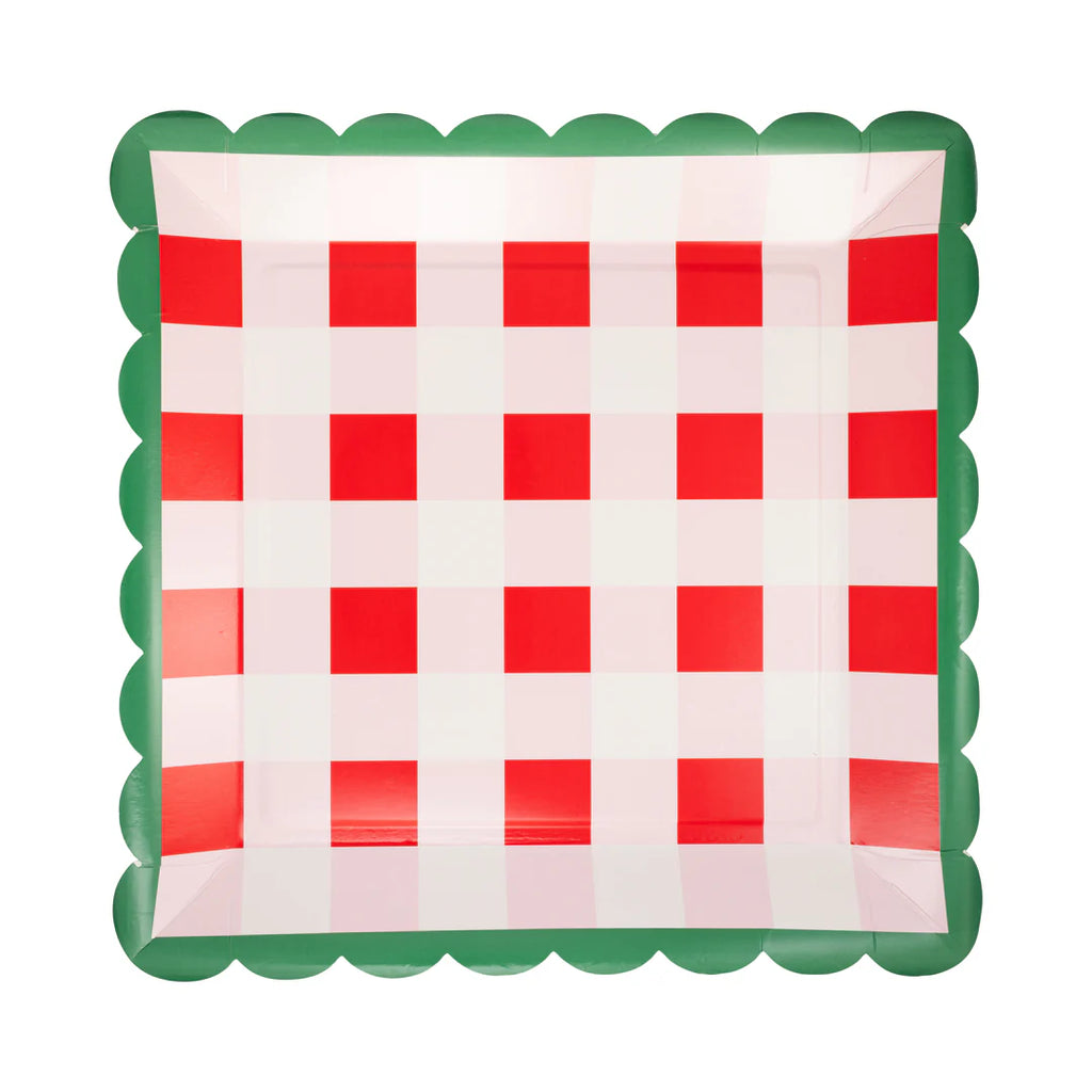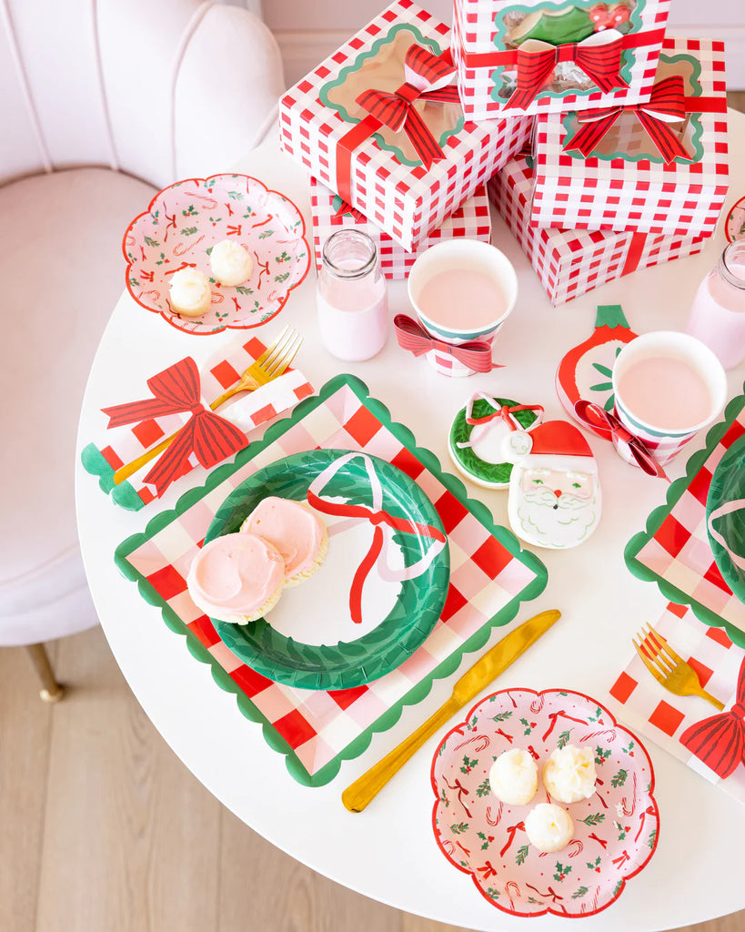 Add festive cheer to your holiday celebrations with our Plaid Scalloped Edge Plate. Featuring a vibrant pink and red plaid design, these plates bring a lively and joyful touch to your Christmas parties.